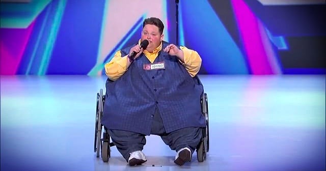 Amikor felesége segítségével megérkezett a színpadra, nem csak a zsűri, hanem a közönség is jócskán meglepődött. Amikor pedig meghallották a hangját, mindenkinek elakadt a szava.