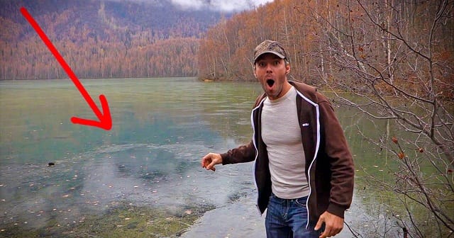 Ez a férfi felkapott egy követ és rádobta a befagyott tóra. Így lepődött meg attól, ami történt